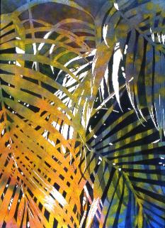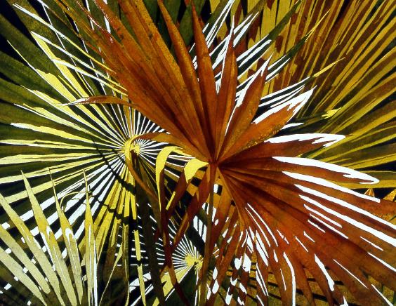 "Starburst II" is one of a series of several paintings which were inspired by the awesome effects of patterns of light and shadow on the tropical foliage found at Pinecrest Gardens, FL
