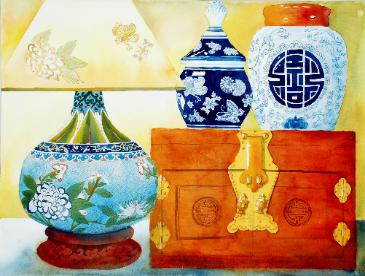 "China Shoppe" Transparent Watercolor on Paper Collection of Barbara Kobrick |