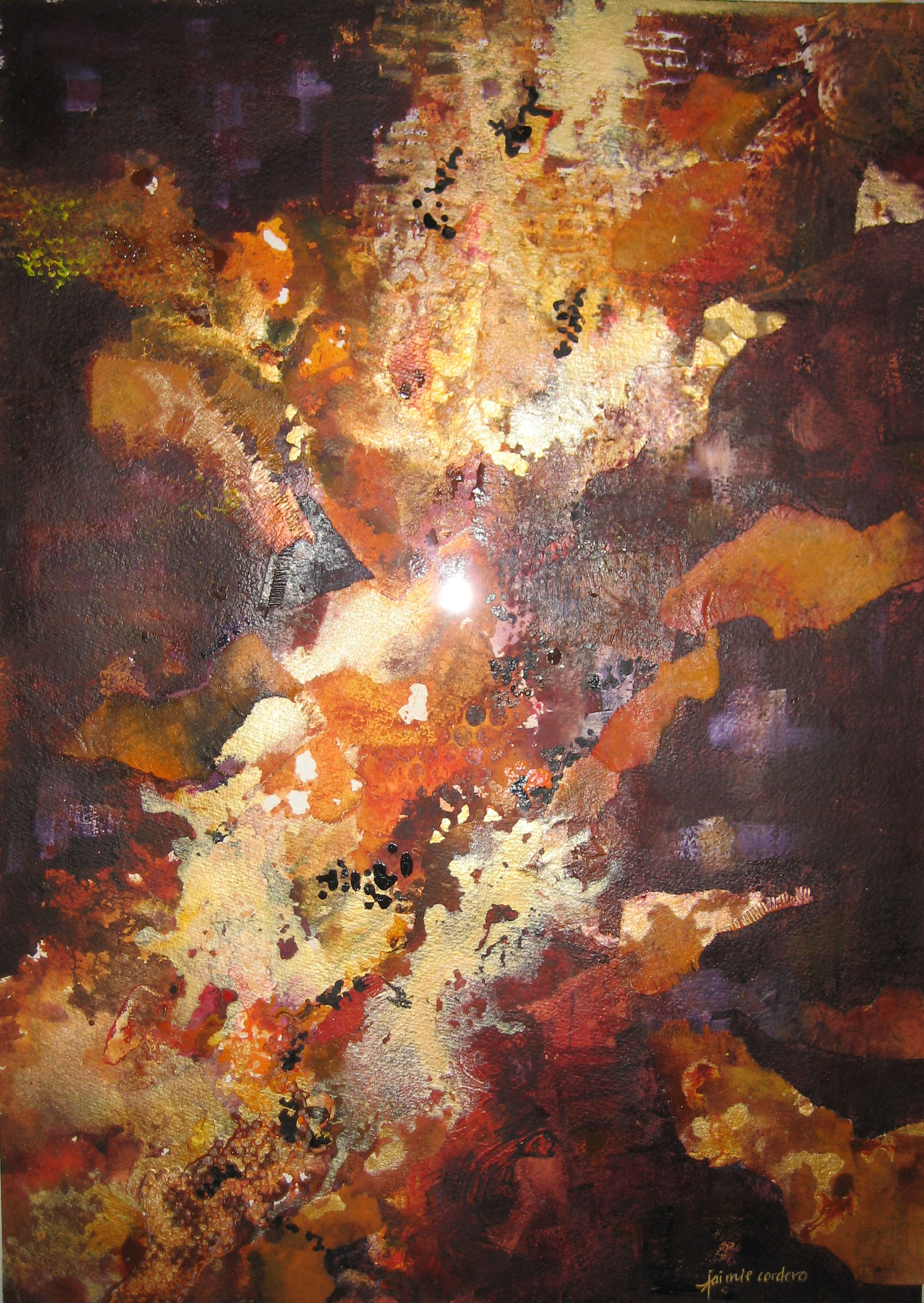 | "Golden Cosmos" 30" x 22" Original Watercolor, Gouache, Acrylic & Collage on 300 pd Watercolor paper |
